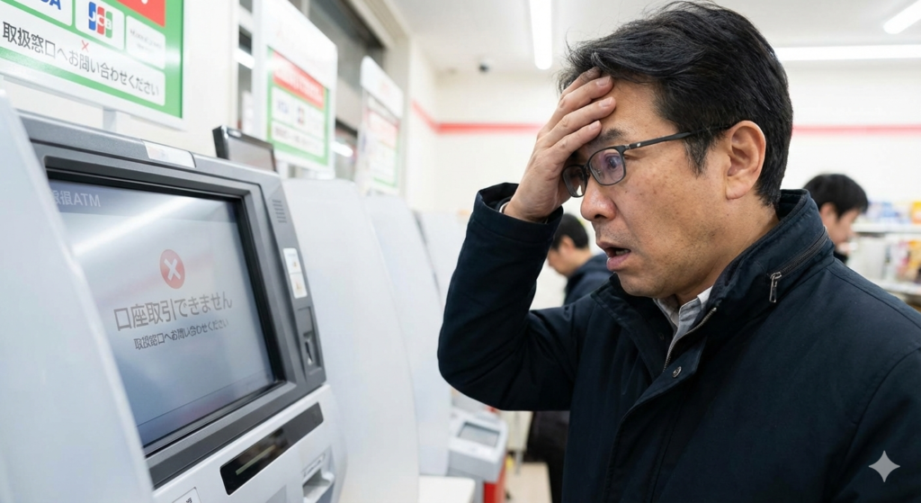キャッシュカードも、ATMで…“取り扱いできません”って…!表示されたって……」