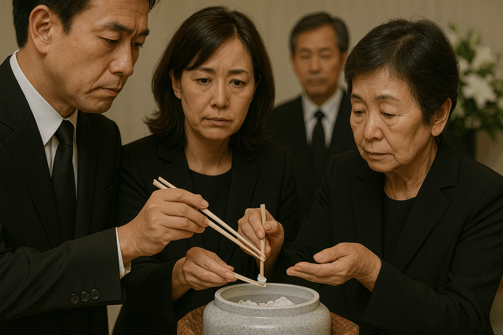 小さな準備が、当日の不安を確実に減らします。火葬が終わったら**収骨(お骨拾い)**です。二人一組で骨箸(こつばし)を使い、喉仏(のどぼとけ)などを丁寧に納めます。