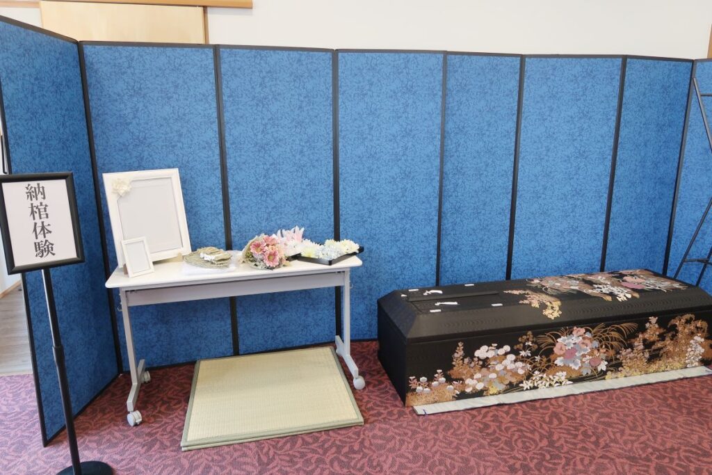森の風ホール国立のセミナーでこれまでも何度か行っている納棺体験を、今回もご用意いたします!実際のご葬儀で使用している本物のお棺を使って納棺体験を行います。過去にご参加いただいた方からは